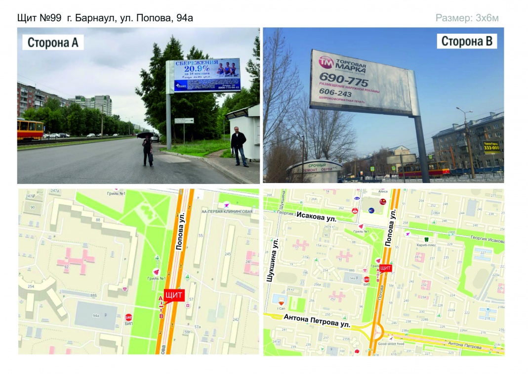 Рекламная конструкция установлена на улице Попова в крупном спальном районе. Участок дороги с плотным транспортным движением.