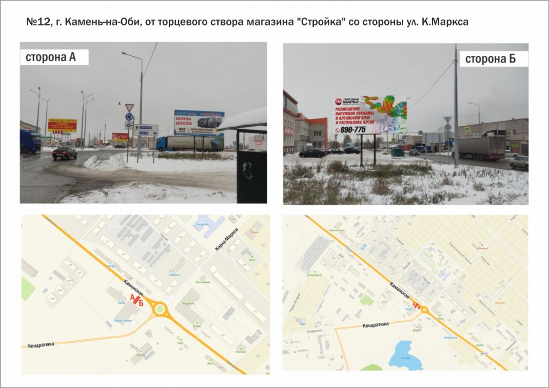 Расположение г. Камень-на-Оби от торцевого створа магазина "Стройка" со стороны ул. К. Маркса